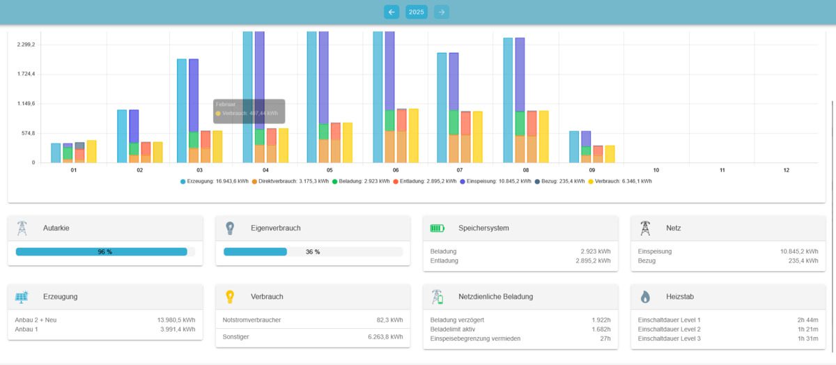 Startseite • Referenzen • Schritt für Schritt unabhängig – wie ein Altbau zum Solar Home wird Schritt für Schritt unabhängig – wie ein Altbau zum Solar Home wird 75 % Stromautarkie, über 21 kWp Leistung und ein Altbau von 1926 – Murat Kocer aus Aichach zeigt, wie sich mit Weitblick, regionalem Know-how und einer starken Partnerschaft ein sanierungsbedürftiges Haus in ein modernes Solar-Home verwandeln lässt. Eckdaten der Installation Satteldach Dachart 21,25 kWp Leistung 42 kWh Stromspeicher 50 Stück Solarmodule InhaltsverzeichnisSchritt für Schritt unabhängig – wie ein Altbau zum Solar Home wirdEckdaten der Installation Die Entscheidung für enerix Aichach-FriedbergProjektumsetzung mit Solarprofis aus der Region In drei Bauabschnitten zur KomplettlösungAnlageninstallation im ÜberblickPerfekte Umsetzung & volle ZufriedenheitFazit: Ein Haus bereit für die Zukunft Schritt für Schritt unabhängig – wie ein Altbau zum Solar Home wird “Ich wollte mein Haus nicht nur sanieren, sondern zukunftssicher machen.” Mit diesem Credo machte sich Murat Kocer an die Sanierung seines Einfamilienhauses im wunderschönen Aichach. Nach der Installation der Erstanlage ließ ihn das Thema solar Energiegewinnung nicht mehr los. In drei Bauabschnitten errichtete er eine Photovoltaik-Anlage, die heute seinen Strombedarf fast komplett deckt. Eckdaten der Installation Dachart: Satteldach Leistung: 21,25 kWp Stromspeicher: 42 kWh Solarmodule: 50 Stück Murat Kocer hat sich in Aichach seinen Traum erfüllt: Er kaufte ein charmantes Haus aus dem Jahr 1926 und saniert es Schritt für Schritt, um es energieeffizienter zu machen. Für ihn war von Anfang an klar: Eine Photovoltaikanlage gehört dazu. Nicht nur wegen der Stromkosten, sondern auch zur Wertsteigerung der Immobilie und zur Unabhängigkeit von Energieversorgern. Nachdem er sein Heizsystem von Öl auf Pellets umgestellt hatte, machte er sich daher Gedanken um eine effiziente und klimafreundliche Stromversorgung. Die Entscheidung für enerix Aichach-Friedberg „Ich habe online recherchiert und bin über die Google-Suche auf enerix Aichach-Friedberg gestoßen. Der erste Kontakt war sofort positiv – freundlich, professionell und ohne diese übliche Drücker-Mentalität“ Besonders überzeugt hat ihn das strukturierte Angebot: alle Komponenten waren darin transparent aufgelistet und sämtliche Kosten akkurat dargestellt. „Eine gute Kommunikation mit dem Kunden ist uns wichtig“, erläutert Eugen Peter, Vertriebsverantwortlicher bei enerix Aichach Friedberg. Von Anfang an hat er Murat Kocer bei seinem Photovoltaik-Projekt begleitet. Die regionale Nähe spielte bei seiner Kaufentscheidung eine wichtige Rolle, meint Kocer: „Mir war wichtig, dass jemand greifbar ist, wenn es Fragen gibt.“ Projektumsetzung mit Solarprofis aus der Region Von der ersten Idee bis zur Kontaktaufnahme vergingen etwa zwei Monate. Nach seiner Online-Recherche ließ sich der Immobilienbesitzer persönlich von enerix beraten. Dann ging alles Schlag auf Schlag: Von der Erstbegehung vor Ort, der Anlagenplanung über die Montage und Installation der PV-Module bis zur Anmeldung beim Netzbetreiber. „Ich war in sämtliche Planungsschritte einbezogen und wusste immer, was Stand der Dinge ist. Aber trotzdem blieb für mich der Aufwand sehr überschaubar – enerix hat für mich auch die gesamte Bürokratie übernommen, wie die Registrierung im Marktstammdatenregister, das war sehr hilfreich.“ In drei Bauabschnitten zur Komplettlösung Nachdem im September 2024 30 PV-Module ihre Arbeit aufnahmen, wurde Kocer schnell zum Wiederholungstäter. In zwei Schritten erweiterte er sowohl seine Photovoltaik-Anlage als auch seinen Speicher, bis sie die für ihn passende Größe erreichten. Zwischen den einzelnen Bauabschnitten lagen nur wenige Monate. 1. Bauabschnitt – September 2024 Los ging es mit einer 12,75 kWp PV-Anlage auf Dächern seiner beiden Garagen – kombiniert mit einem 14 kWh Speicher. Bereits kurz nach Inbetriebnahme stellte Kocer fest: Die Anlage ist zu klein für seinen tatsächlichen Verbrauch. 2. Bauabschnitt – Januar 2025 Auf dem Hausdach wurden zusätzlich 8,5 kWp PV-Leistung installiert und der Speicher um 5,6 kWh erweitert. Wieder wurde der Kunde eng eingebunden und enerix Aichach-Friedberg passte die Anlage auf seine Wünsche hin an. 3. Bauabschnitt – Juli 2025 Nach den ersten sonnigen Wochen zeigte sich: Der Stromverbrauch, u. a. durch Luftentfeuchter und Beleuchtung, war höher als erwartet. Also wurde die Speicherlösung erneut ausgebaut – ein zweiter Batterieturm wurde ergänzt, und die Notstromversorgung nachgerüstet. Anlageninstallation im Überblick Jahr Maßnahme Beschreibung Kosten 09/2024 PV 12,75 kWp + Speicher 14 kWh Umstellung der Stromversorgung auf PV durch Erstinstallation einer PV-Anlage auf der Garage 26.500 € 01/2025 PV 8,5 kWp + Speicher 5,6 kWh Erweiterung der PV-Anlage auf dem Hausdach 12.850 € 07/2025 Speicher + Notstromversorgung Batterieerweiterung und Ergänzung einer Notstromversorgung 12.750 € Gesamt 21,25 kWp PV-Leistung, 42 kWh Stromspeicher 52.100 € Perfekte Umsetzung & volle Zufriedenheit „Die Monteure haben super gearbeitet. Alles lief nach Plan, die Baustelle war immer ordentlich und sicher. Selbst Kleinigkeiten wurden schnell erledigt. Besonders gefiel ihm die Verlässlichkeit und Kommunikation auf Augenhöhe.“ Sein Rat an andere Hausbesitzer: Ich würde jedem raten, gleich eine größere Anlage zu bauen – und die Auslegung auf Herbst und Winter abzustimmen. Der Autarkiegrad von Murat Kocers Haus liegt bei rund 75% – das macht ein ausreichend großer Stromspeicher möglich. Dank integrierter Notstromfunktion ist das Gebäude auch vor Problemen durch Stromausfall geschützt. Fazit: Ein Haus bereit für die Zukunft Mit seiner neuen PV-Anlage hat Murat Kocer sein sanierungsbedürftiges Altbauhaus in ein modernes, energieeffizientes Zuhause verwandelt. Die Entscheidung für enerix Aichach-
