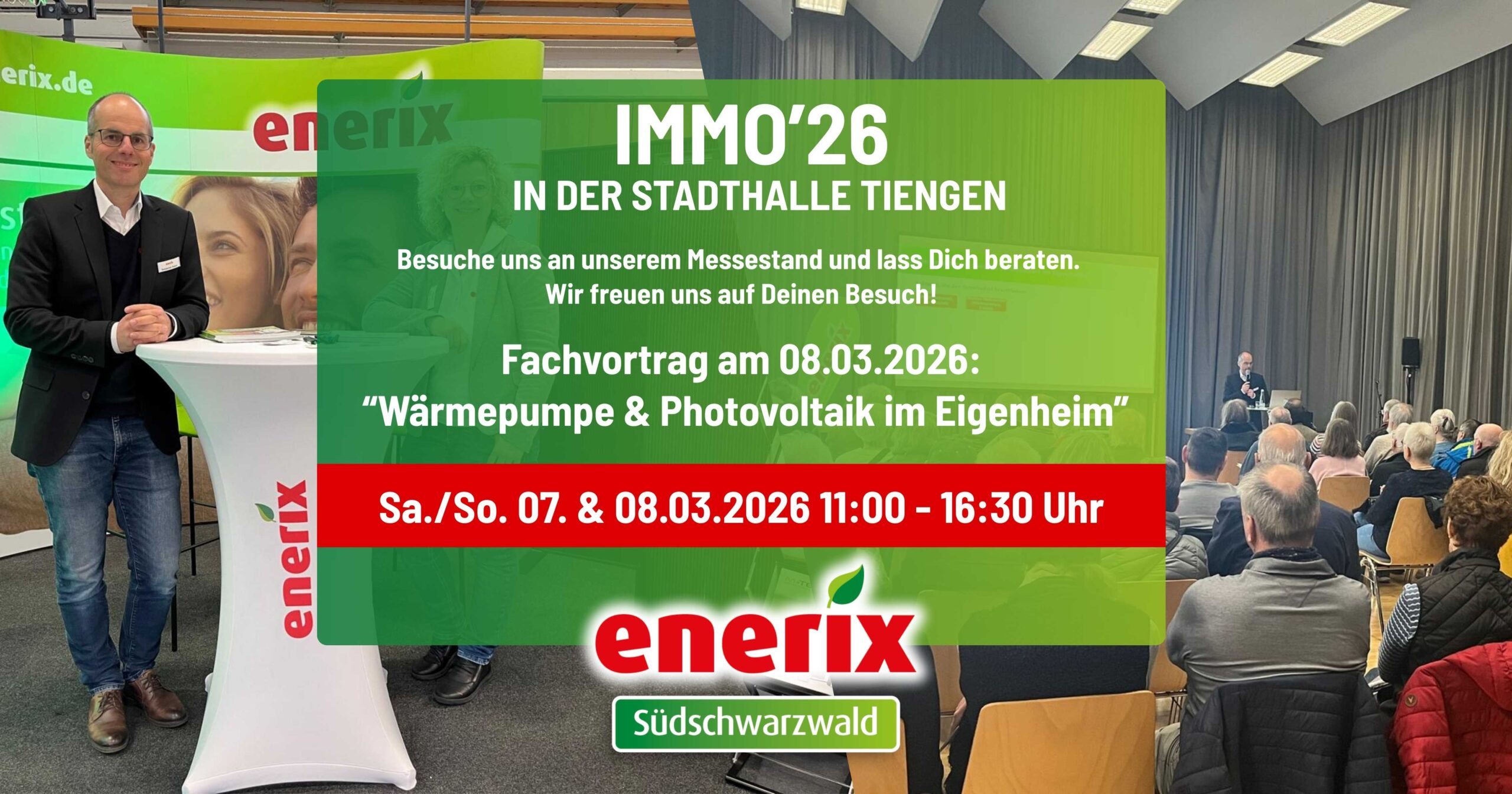 7 März Immo’26 – Immobilienmesse in Tiengen enerix Südschwarzwald auf der IMMO'26! Entdecke die Zukunft für Dein Zuhause. Jetzt informieren und persönlich beraten lassen. 7.03.2026 - 8.03.2026 08:00 Uhr Stadthalle Tiengen Kostenfrei