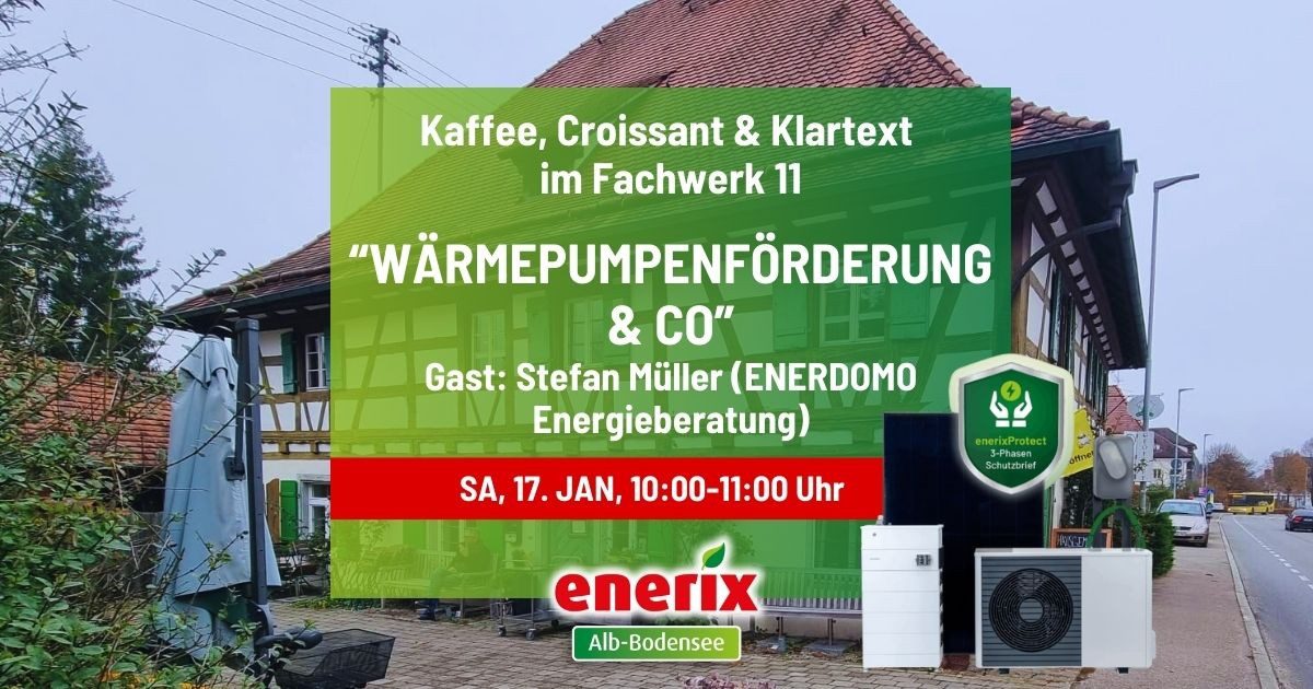 17 Jan. Kaffee, Croissant & Klartext: Wärmepumpenförderung & Co. Erfahren Sie in entspannter Atmosphäre, was eine Wärmepumpe wirklich kosten sollte und wie Sie sie clever fördern lassen – mit Klartext vom Experten und frischen Croissants. 17.01.2026 10:00 Uhr Fachwerk 11 Kostenlos